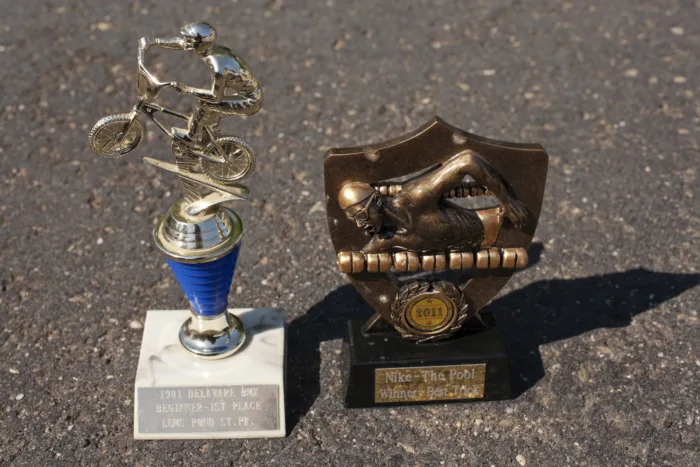 The photo in question- Brian's first BMX trophy from 1981, and the Nike Pool Best Trick trophy in 2011. Three decades of BF-awesomeness.