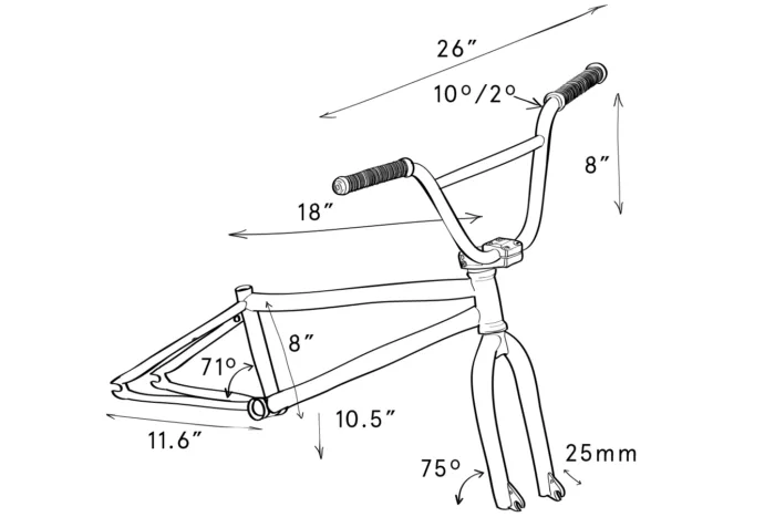 - 75.5-degree head tube angle / 25mm fork offset / 13” rear end